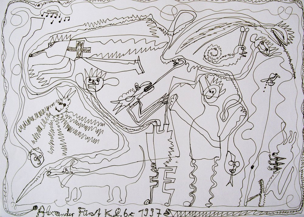 | Technik: | Zeichnung, Filzstift-/Finelinerzeichnung |