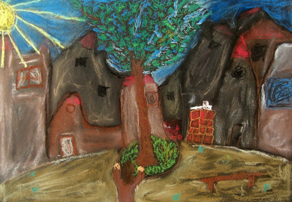 | Material: | Zeichenmaterial, Farbe, Tempera, Fettkreide |
