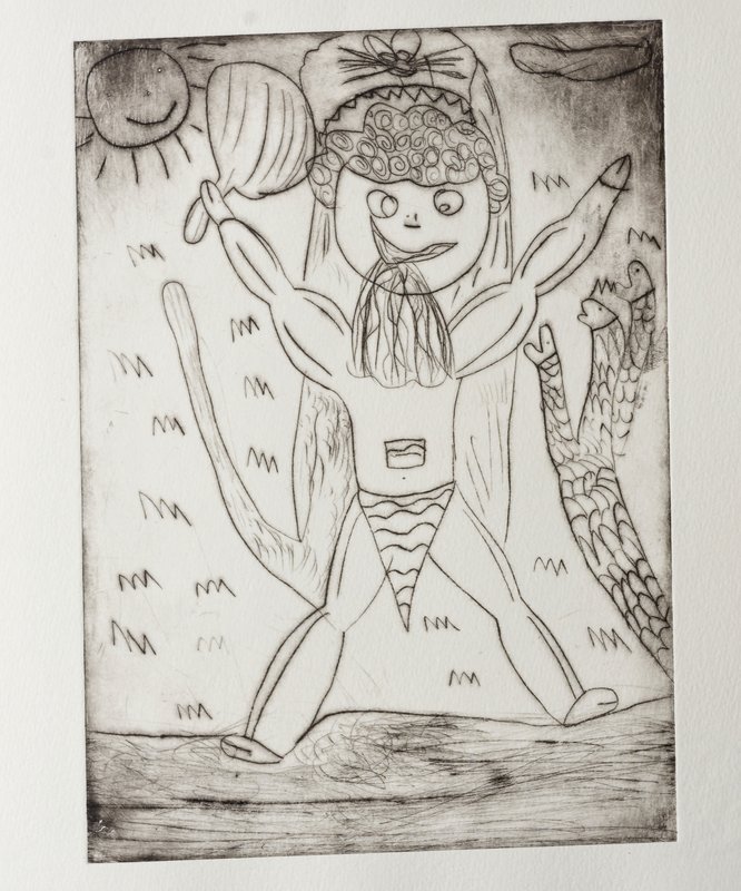 Kaltnadelradierungen mit begleitenden Texten