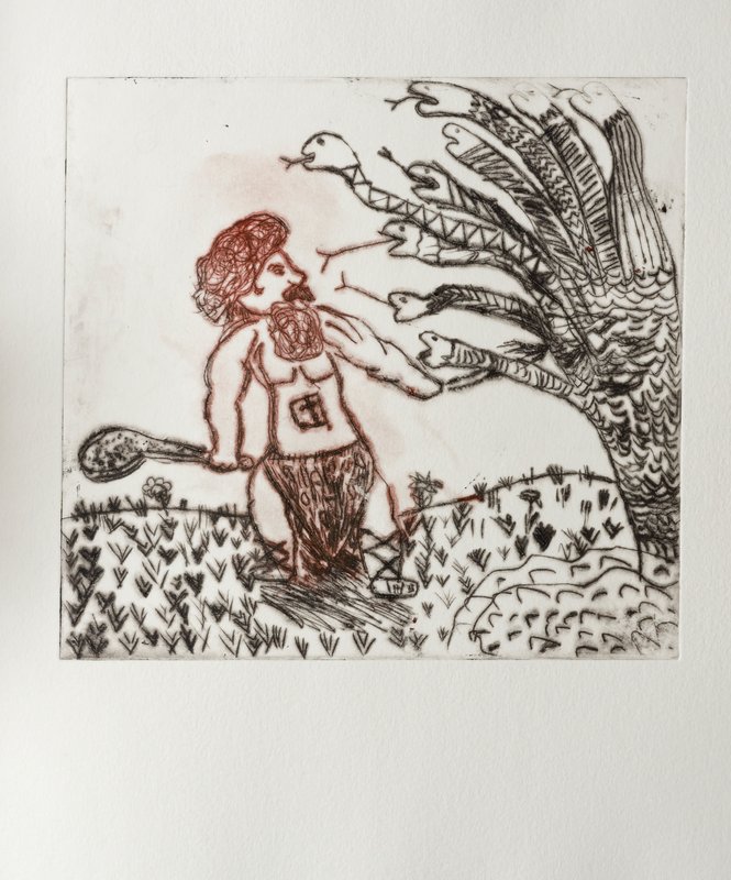 Kaltnadelradierungen mit begleitenden Texten