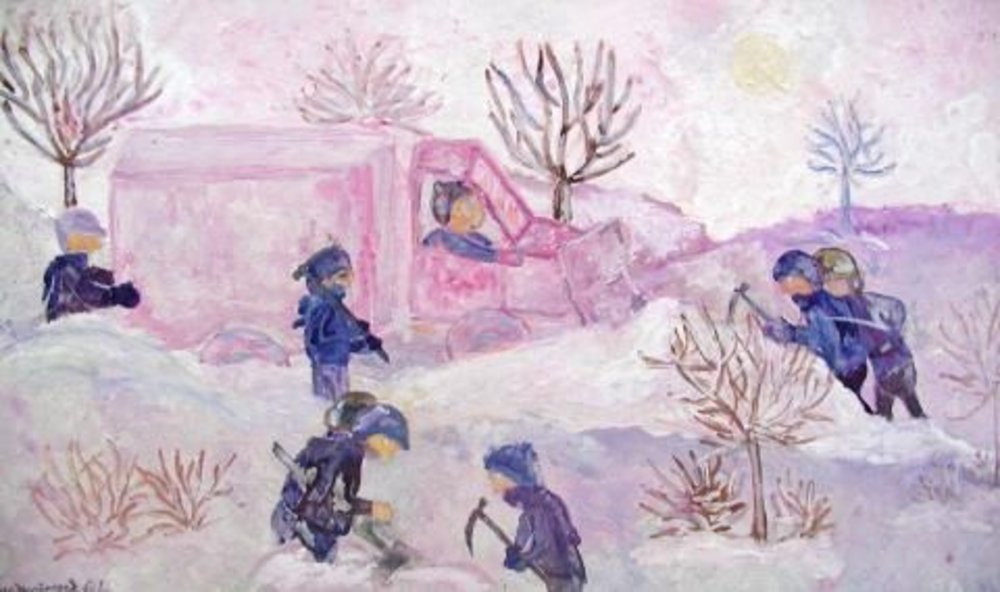 Eine verwehte Straße wird geräumt