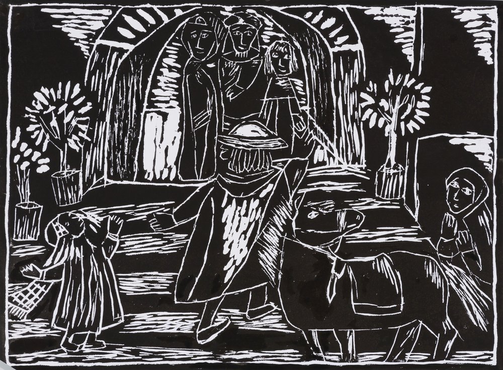 | Technik: | Druck, Linolschnitt |