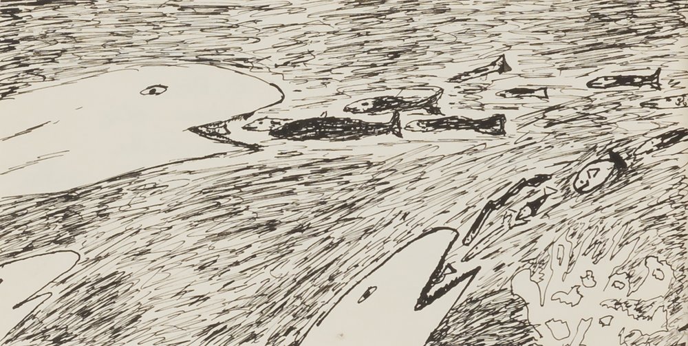 Illustration zu B. Brecht „Wenn die Haifische Menschen wären“