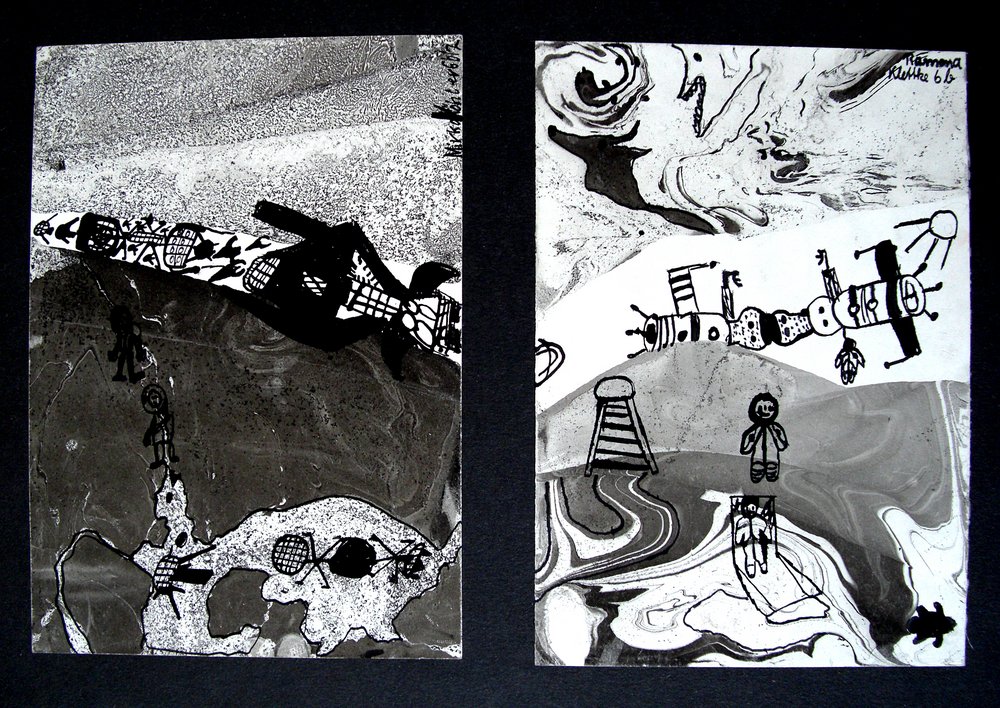 | Technik: | Zeichnung, Tuschzeichnung, Druck, Experimenteller Druck |