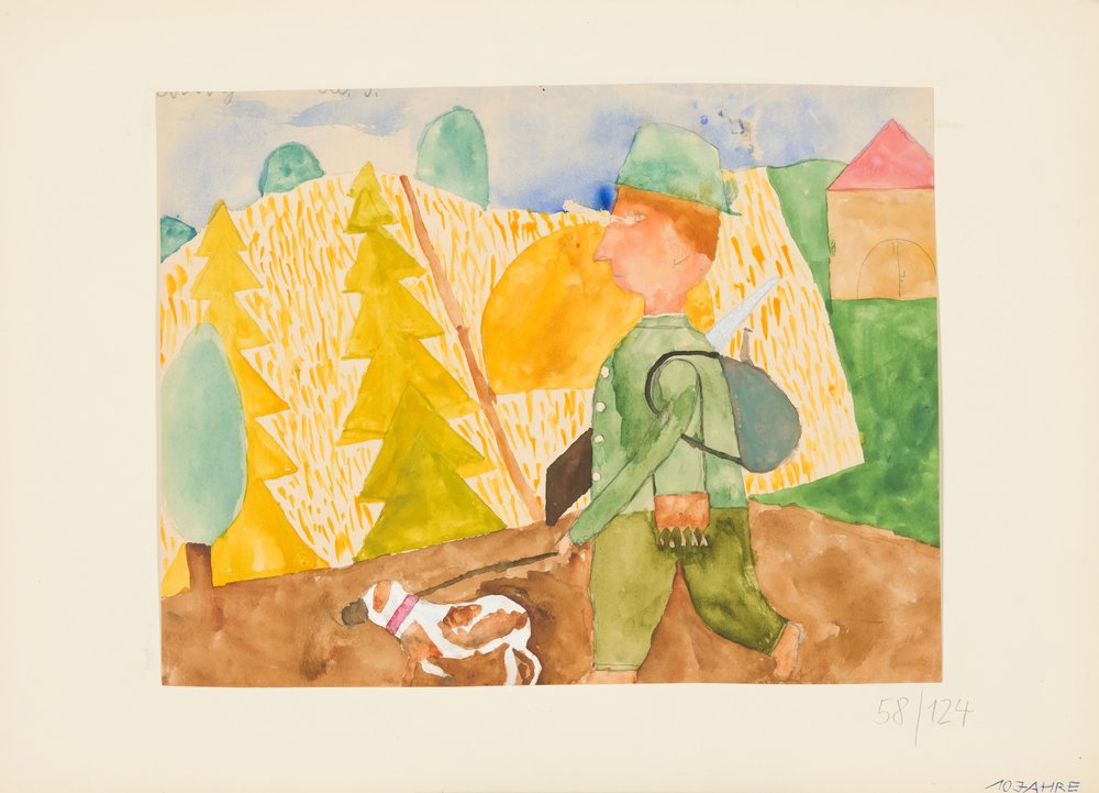 | Material: | Farbe, Papier, Zeichenmaterial, Bleistift |