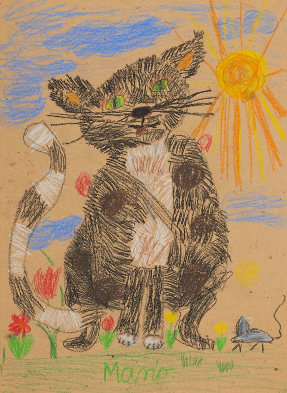 | Material: | Farbe, Papier, Zeichenmaterial, Fettkreide |