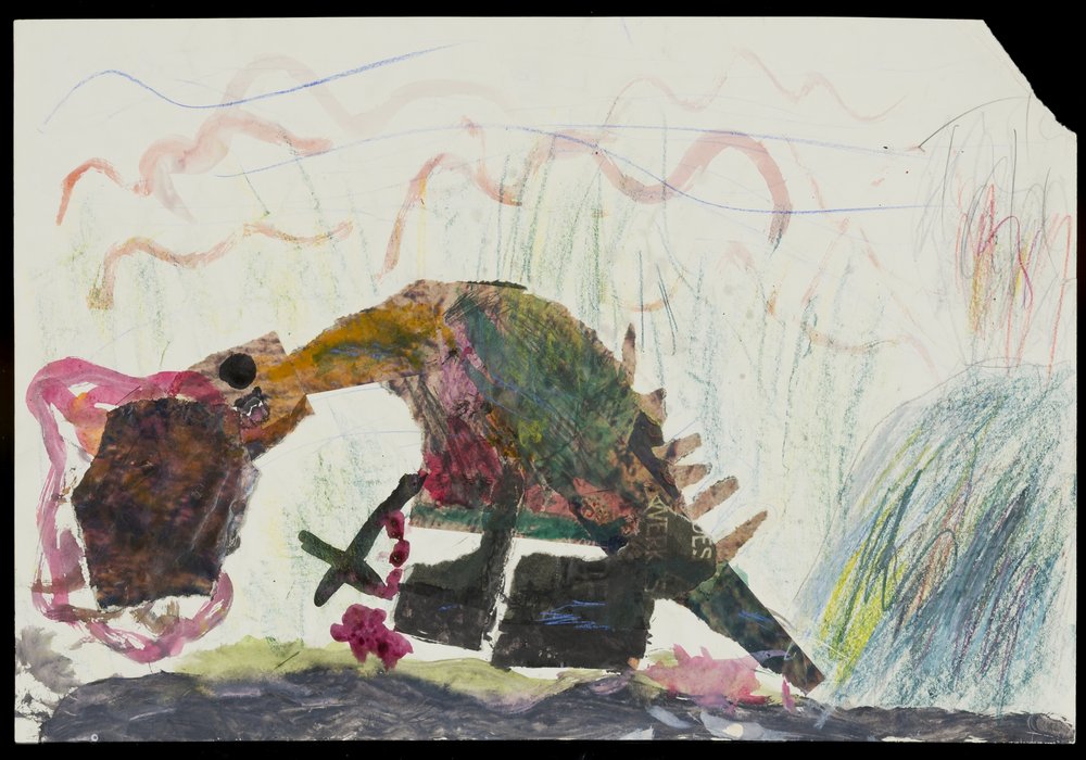 | Technik: | Collage, Zeichnung, Kreidezeichnung |