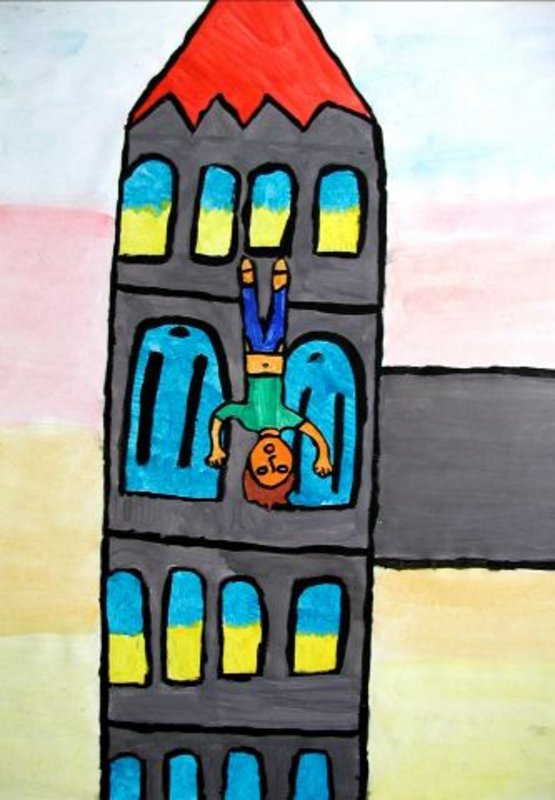 Turm der Liebfrauenkirche mit Sagengestalt