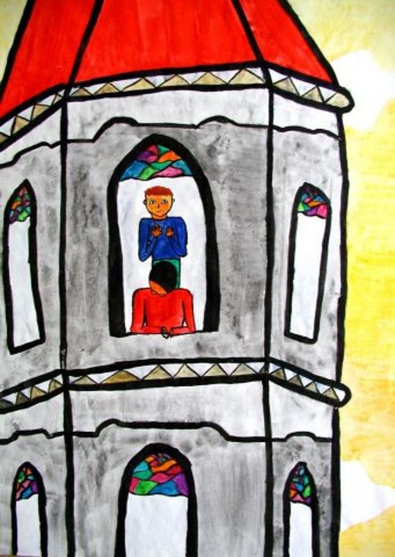 Turm der Liebfrauenkirche mit Sagengestalten